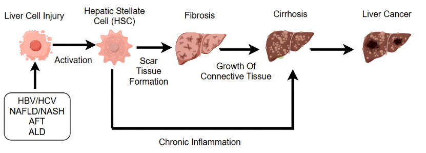 肝细胞癌(Hepatocellular Carcinoma),是全球最常见的原发性肝癌类型(占原发性肝癌的 70%-90%),也是导致癌症相关死亡的主要原因之一。肝细胞损伤后发展为肝癌是一个多阶段、多因素驱动、涉及分子遗传改变和微环境异常的复杂病理过程,核心逻辑是 “持续损伤→异常修复→细胞恶变→肿瘤进展” 的恶性循环。这个过程通常需要数年至数十年,不同诱因(如乙肝病毒、酒精、非酒精性脂肪性肝病等)的损伤机制略有差异,但最终通路存在共性[1]。