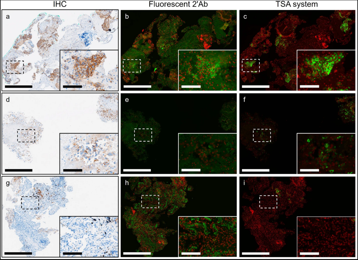 核心结论:IHC是“基础定性工具”,IF是“有限多靶标工具”,而TSA是“高通量精准工具”。三者并非替代关系,而是针对不同需求的分层选择——当研究聚焦单一高丰度靶标时,IHC经济高效。当需3个以内靶标共定位时,IF操作简便。当需解析复杂分子网络(如肿瘤微环境多细胞互作)时,TSA是唯一可行技术。