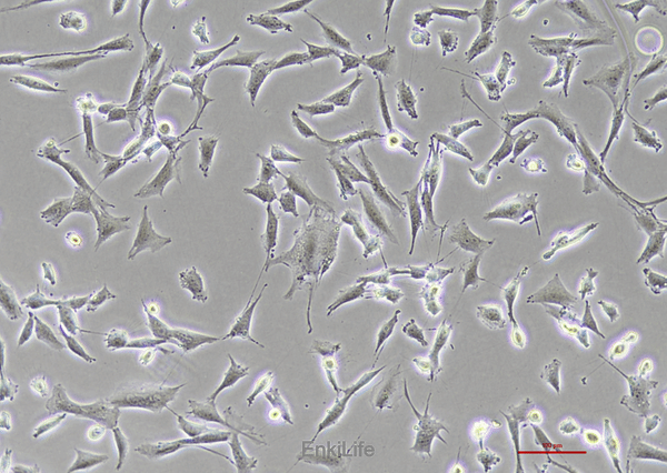 1. 形态与增殖:细胞呈纤维状梭形,可形成单层或多层结构,倍增时间约70小时[5]。
