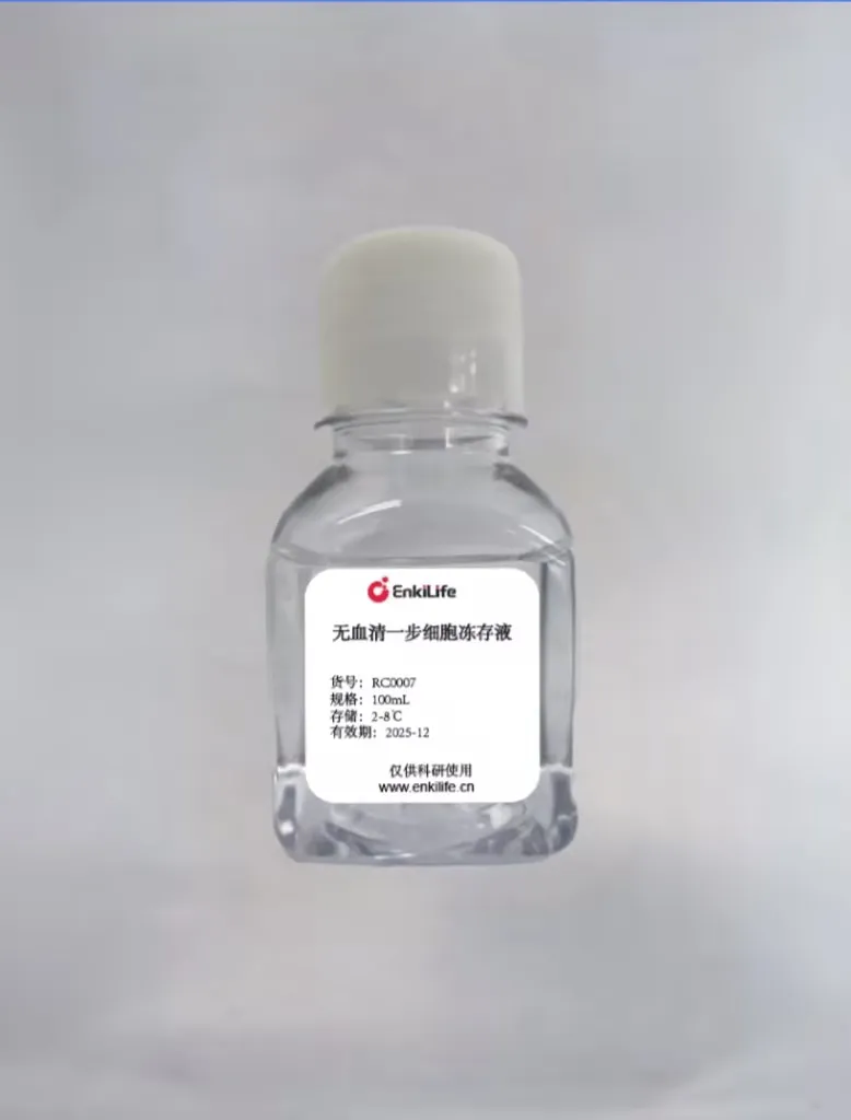 本产品不仅能降低冻存过程对细胞膜的损伤,维持高的细胞复苏率;同时所有成分纯度高化学特性稳定,适用于各种动物细胞株(肿瘤细胞和常规细胞)的长期冻存。 产品配方,无动物性蛋白,无血清,可避免动物蛋白的污染,细胞冻存10年以上的均能安全稳定复苏。产品省去繁琐费时的程序降温过程,直接重悬细胞后置于-80°C冰箱即可完成冻存。该冻存液含有饱和脂肪酸和多糖、抗氧化等各种特殊成分,能够提高长期冻存细胞的存活率和复苏活力,适合于无血清培养细胞和蛋白表达细胞株库存。