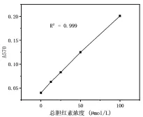 下图展示了本试剂盒测定总胆红素的标准曲线。以下标准曲线仅供参考: