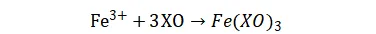 基于二甲酚橙四钠盐与Fe3+之间的配位作用。当二甲酚橙四钠盐加入到含有Fe3+的溶液中时,它能够与Fe3+形成稳定的橙红色络合物。从而可以用于定量检测三价铁离子的浓度。在没有Fe3+的情况下,二甲酚橙四钠盐通常是黄色或橙色;而在Fe3+存在的情况下,溶液的颜色会向红色转变。在560nm处有吸收峰,通过测定该波长吸光度即可计算Fe3+的含量。
