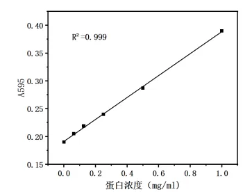 考马斯亮蓝 G-250(Coomassie brilliant blue G-250)在游离状态下呈红色, 最大光吸收在 465nm;当它与蛋白质结合后变为青色,蛋白质-色素结合物在 595 nm 波长下有最大光吸收。其颜色的深浅与蛋白质含量呈正比。