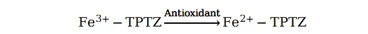 酸性条件下抗氧化物可以还原Ferric-tripyridyltriazine (Fe3+-TPTZ)产生蓝色的Fe2+-TPTZ,随后在593 nm测定蓝色的Fe2+-TPTZ即可获得样品中的总抗氧化能力。由于反应在酸性条件下进行,可以抑制内源性的一些干扰因素。并且由于血浆等样品中的铁离子或亚铁离子的总浓度通常低于10 µM,因此血浆等样品中的铁离子或亚铁离子不会显著干扰FRAP法的检测反应。由于反应体系中的铁离子或亚铁离子是和TPTZ螯合的,样品本身含有的少量金属离子螯合剂通常也不会显著影响检测反应。
