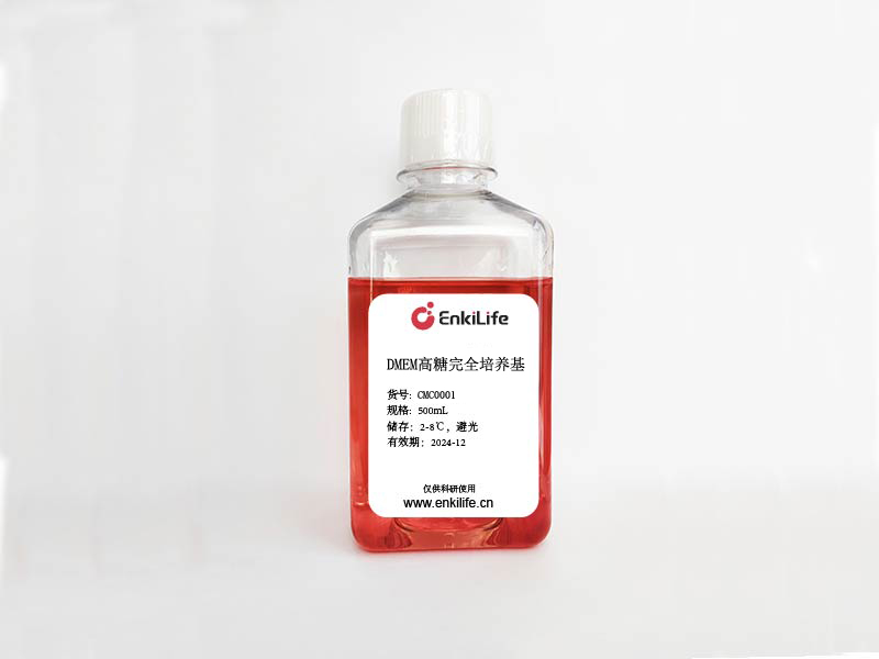 Dulbecco's 改良培养基-DMEM(Dulbecco's Modified Eagle Medium)是在MEM培养基的基础上研制的,与MEM培养基相比,氨基酸的含量增加了2倍,维生素的含量增加了4倍,同时还增加了非必须氨基酸、微量铁离子以及丙酮酸钠。DMEM培养基最初设计葡萄糖含量为1000mg/L(低糖型),后来又发展出葡萄糖含量为4500mg/L(高糖型),现已广泛应用于各种细胞的培养。