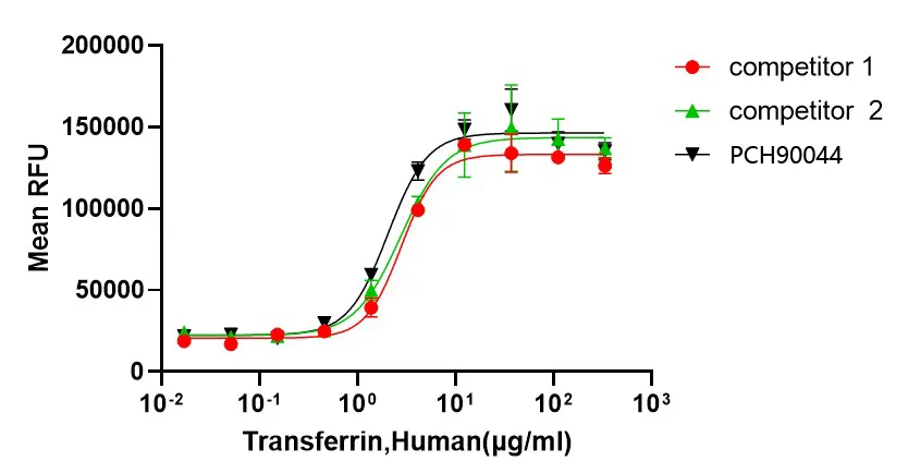 Serotransferrin belongs to transferrin family, and contains 2 transferrin-like domains. The protein is a secreted protein, and expressed by the liver and secreted in plasma. Transferrins are iron binding transport proteins which can bind two Fe3+ ions in association with the binding of an anion. It is responsible for the transport of iron from sites of absorption and heme degradation to those of storage and utilization. Serum transferrin may also have a further role in stimulating cell proliferation.