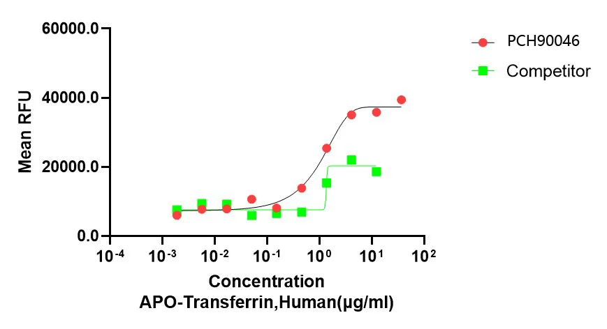 Serotransferrin belongs to transferrin family, and contains 2 transferrin-like domains. The protein is a secreted protein, and expressed by the liver and secreted in plasma. Transferrins are iron binding transport proteins which can bind two Fe3+ ions in association with the binding of an anion. It is responsible for the transport of iron from sites of absorption and heme degradation to those of storage and utilization. Serum transferrin may also have a further role in stimulating cell proliferation.